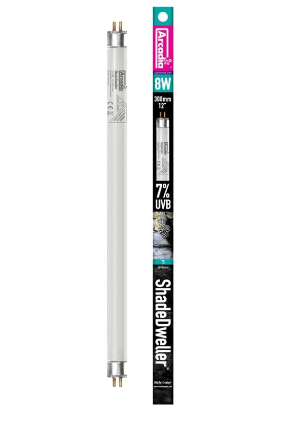 Az Arcadia Shadedweller 7% UVB Lamp egy kifejezetten alacsony UVB-igényű, árnyékkedvelő hüllők számára fejlesztett fénycső, amely biztosítja az egészséges D3-vitamin szintézishez szükséges UVB-sugárzást mesterséges körülmények között is. Az Arcadia szakértelmére építve a termék megbízható, kiegyensúlyozott UV-spektrumot nyújt, támogatva a kalcium-anyagcserét és a csontozat optimális fejlődését.