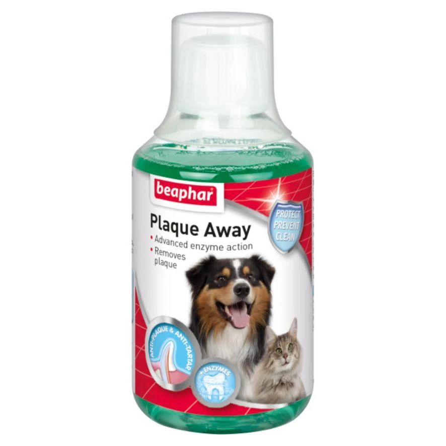 A Beaphar Plaque Away egy innovatív szájápoló készítmény, amelyet kifejezetten olyan kisállatok számára fejlesztettek ki, akiknél a hagyományos fogmosás nehézségekbe ütközik. Az oldat olyan enzimeket és aktív összetevőket tartalmaz, amelyek az ivóvízbe keverve folyamatosan kifejtik hatásukat a szájüregben. Megakadályozzák a baktériumok megtapadását a fogfelszínen, így gátolják a foglepedék (plakk) megszilárdulását és fogkővé alakulását.