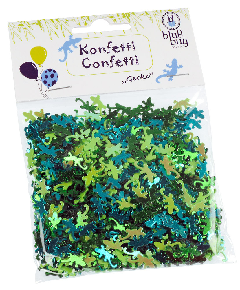 A BlueBug Ünnepi konfetti  egy különleges, gekkó mintás konfetti, amely tökéletes választás lehet születésnapokra, vizsgaünneplésre vagy bármilyen alkalomra, ahol egy kis extra vidámságra van szükség.