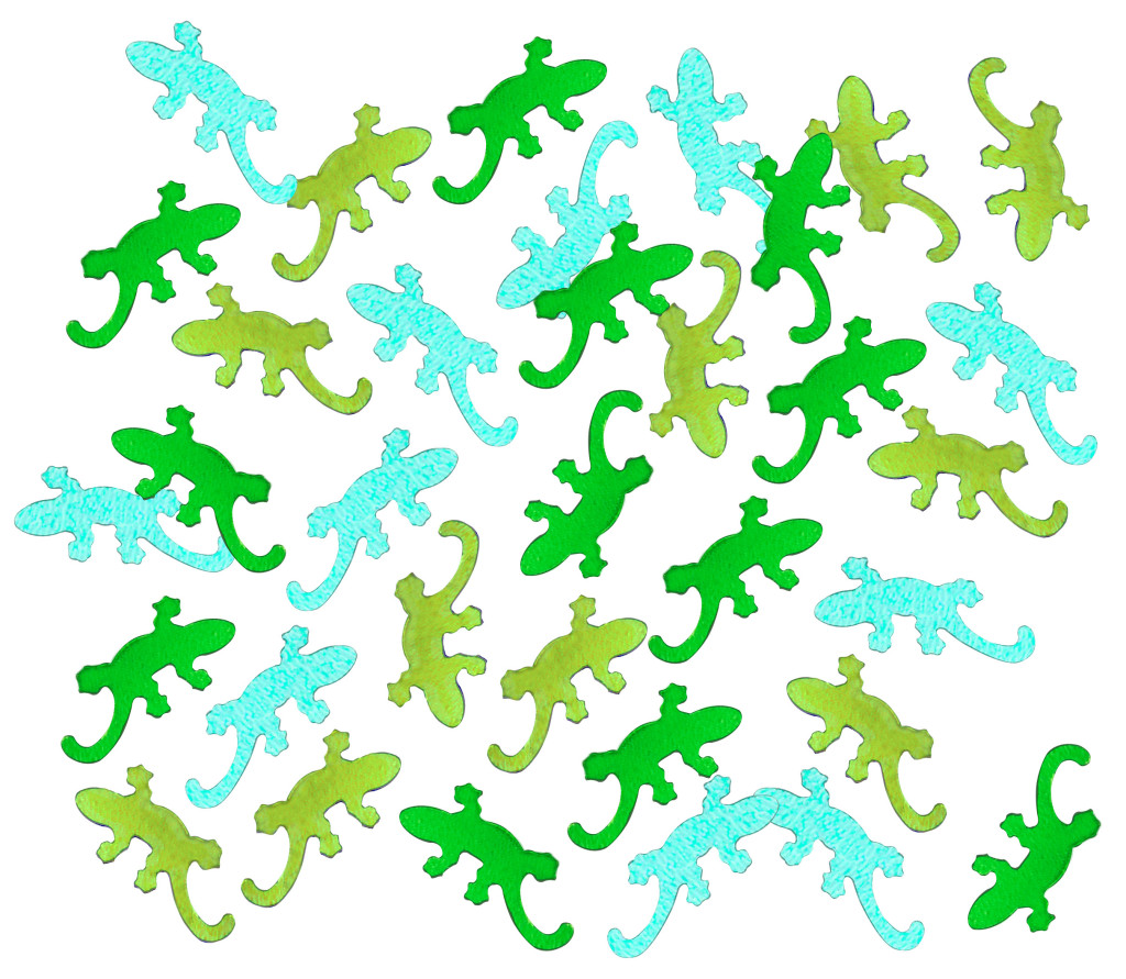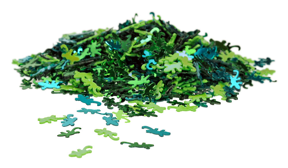 Itt a buli ideje! A fényes, egyedi, gekkó alakú fémes konfetti nagyszerű dekoráció lehet partikra vagy az ünnepi vacsoraasztalra.