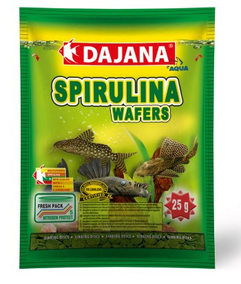 A DAJANA-SPIRULINA WAFERS egy kiváló minőségű, süllyedő haleledel, amely kifejezetten az algázó harcsák, fenéklakó halak és növényevő díszhalak számára lett kifejlesztve. A magas spirulinatartalom támogatja az egészséges növekedést, az emésztést, valamint az élénk és természetes színezetet. Ha szeretnéd halaid számára a legjobb növényi alapú táplálékot biztosítani, ez a wafertípusú eledel tökéletes választás!