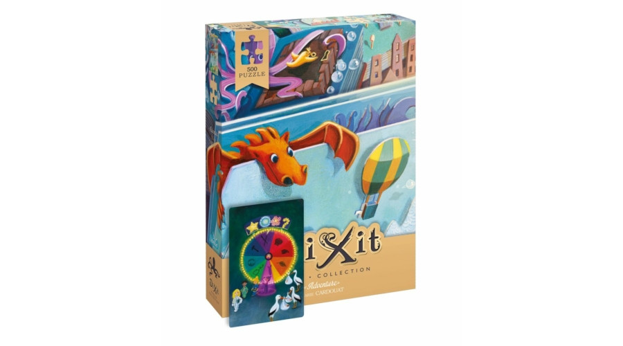 A Dixit puzzle 500 – Kalandok (Adventure - 04) egy varázslatos világba repíti a kirakózás szerelmeseit, ahol a fantázia és a képzelet határtalanná válik. Ez a különleges, 500 darabos kirakó a népszerű Dixit társasjáték egyedi, álomszerű illusztrációit kelti életre, amelyekben minden apró részlet mesét mesél. A Marie Cardouat által megalkotott képi világ színei, hangulata és rejtett szimbólumai tökéletesen visszaadják a Dixit univerzum varázsát – egyszerre játékos, meghitt és elgondolkodtató.