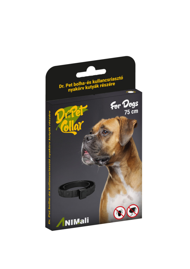 A Dr. Pet antiparazita hatású bolha-, és kullancsriasztó nyakörv kutyáknak készült. Legalább 90 napig véd a bolhák ellen és minimum 38 napig tartó riasztó hatása van a kullancsokkal szemben.