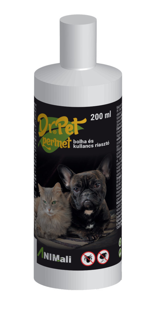 A Dr. Pet bolha-, és kullancsriasztó permet kutyáknak készült azért, hogy a kutyára fújva távol tartsa a parazitákat négylábú barátainktól. Használata ajánlott erdei sétákra, magasfüves és egyéb olyan helyekre, ahol a paraziták nagyobb számban fordulhatnak elő.