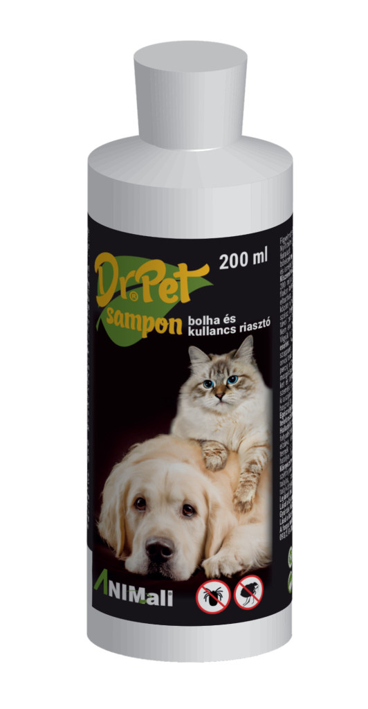 A Dr. Pet riasztó és tisztító hatású sampon kutyáknak készült, amely véd a bolhák és kullancsok ellen.