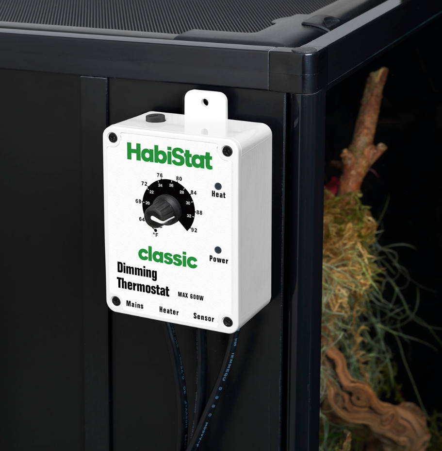 A HabiStat Dimmer Thermostat White egy megbízható, analóg termosztát, amely lehetővé teszi a terráriumi fűtőberendezések pontos és fokozatos teljesítményszabályozását akár 600 wattos teljesítményig. Ideális választás hüllőket és kétéltűeket tartók számára, akik stabil, a természetes körülményeket utánzó hőmérsékletet szeretnének biztosítani kedvenceik számára.