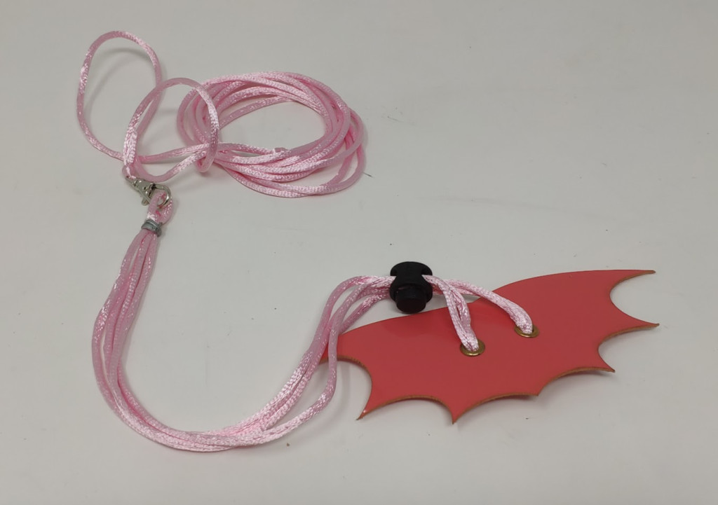 Szín: Rózsaszín póráz, pirosas denevér forma