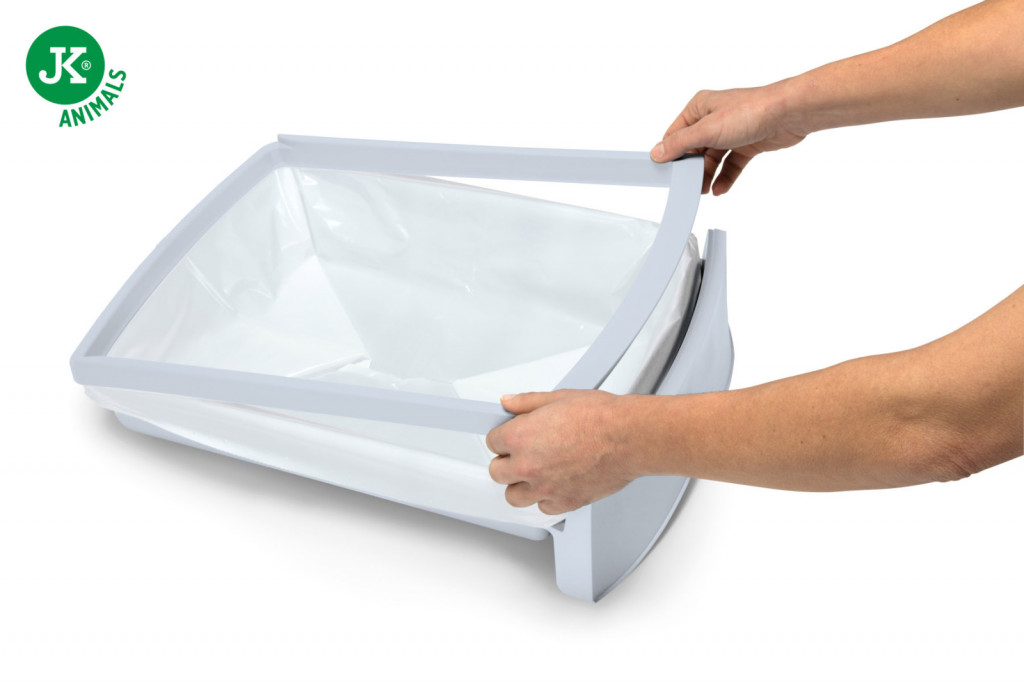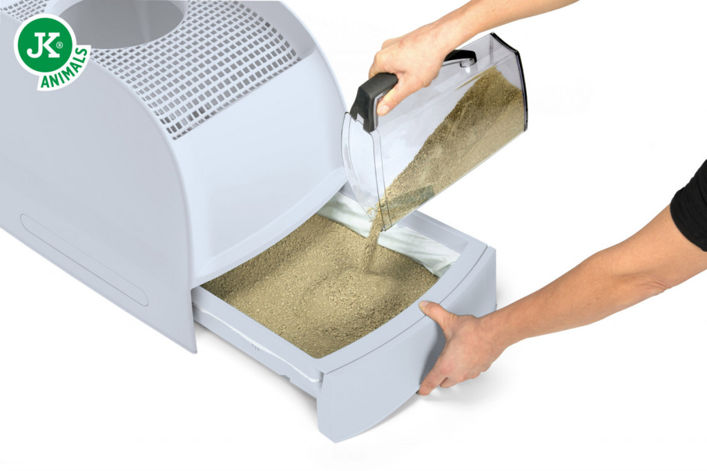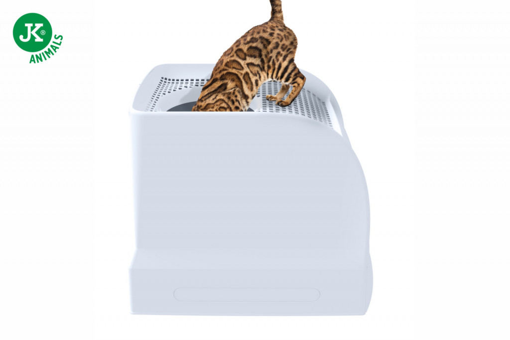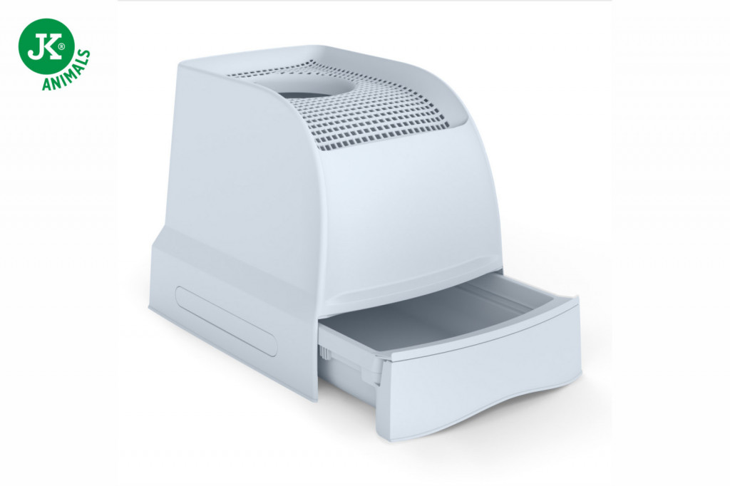 A fedél könnyen levehető vagy felnyitható, ami egyszerűvé teszi az alomcserét és az alapos takarítást. Tartós, kiváló minőségű műanyagból készült, amely ellenáll a szagoknak és a nedvességnek, emellett könnyen tisztán tartható. A szürke szín modern, friss és barátságos megjelenést biztosít, így jól illeszkedik bármilyen otthoni környezetbe.