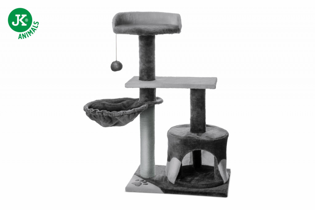 JK | Robin emeletes macskakaparó házzal, pihenővel, játékkal, 50X35X88cm, szürke