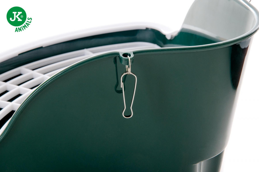 A JK-WC sarokvécé kifejezetten a ketrec sarkába illeszkedő kialakításával optimális helykihasználást biztosít kedvence lakhelyén. A magasított hátfal megakadályozza az alom és a vizelet kiszóródását, így a környezet higiénikusabb marad.