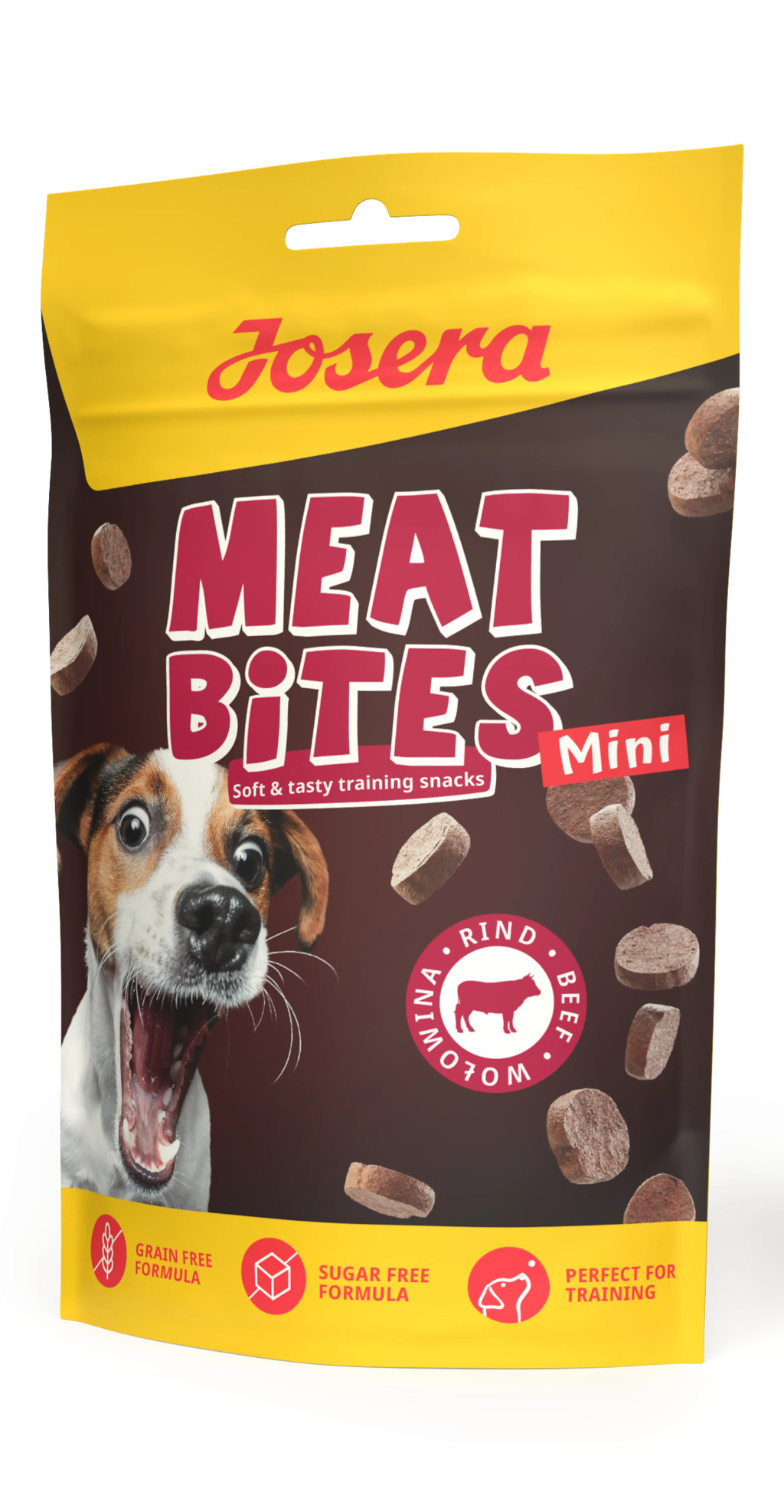 A Josera Meat Lovers Meat Bites Mini Beef a természetes, húsban gazdag jutalmazás kisméretű, puha formában.