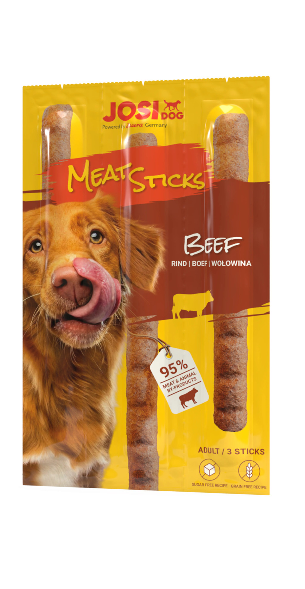 A JosiDog Meat Sticks Beef nem tartalmaz mesterséges színezéket, ízfokozót vagy tartósítószert, így természetes és egészséges alternatívát kínál a hagyományos jutalomfalatokkal szemben. A külön csomagolt rudak frissen tartják a falatokat, így mindig aromásak maradnak.