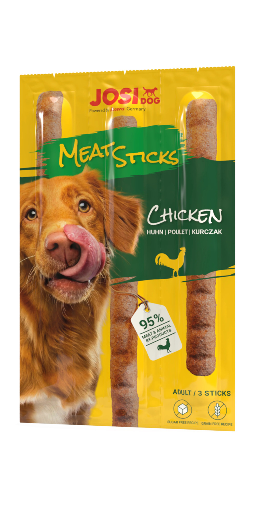 A JosiDog Meat Sticks Chicken egy ízletes, csirkés ízvilágú húspálcika, amelyet kifejezetten a kutyák ízléséhez igazítva fejlesztettek ki. A finom, puha textúra miatt minden méretű és korú kutya számára könnyen rágható és emészthető.