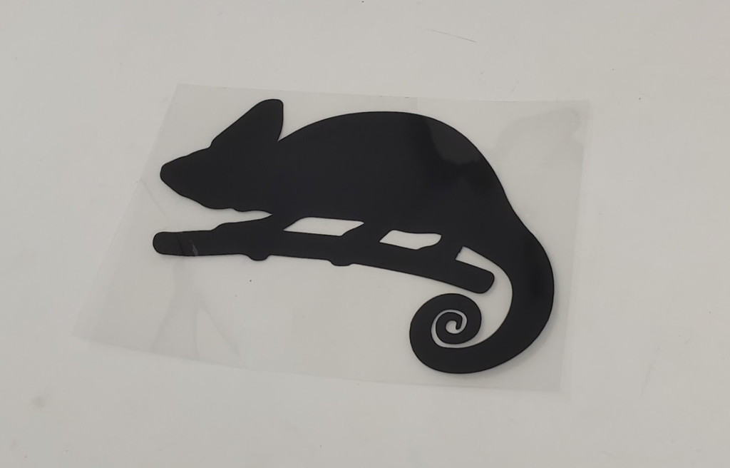 Egyszerű, mégis karakteres fekete matrica egy ágon ülő kaméleonról. Minimalista vonalvezetés, időtálló vinyl alapanyag – tökéletes autóra, laptopra, terráriumra vagy akár falra is.