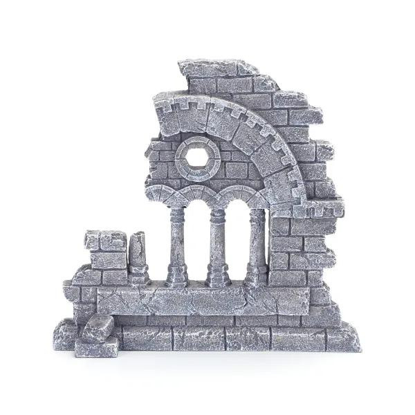 Ez a dekoráció egy omladozó kőfal romját idézi, mintha egy régi város falának maradványát emelte volna ki a természet – és süllyesztette volna a víz mélyére. A kopottas, texturált felület, a repedések és nyílások olyan autentikus hatást keltenek, mintha egy elhagyatott víz alatti romvidéken járnánk. Ez a vizuális élmény nemcsak az emberek szemét kápráztatja el, de a halak és garnélák is felfedező kedvvel úsznak majd körülötte, mintha valóban saját kis világuk részévé vált volna.