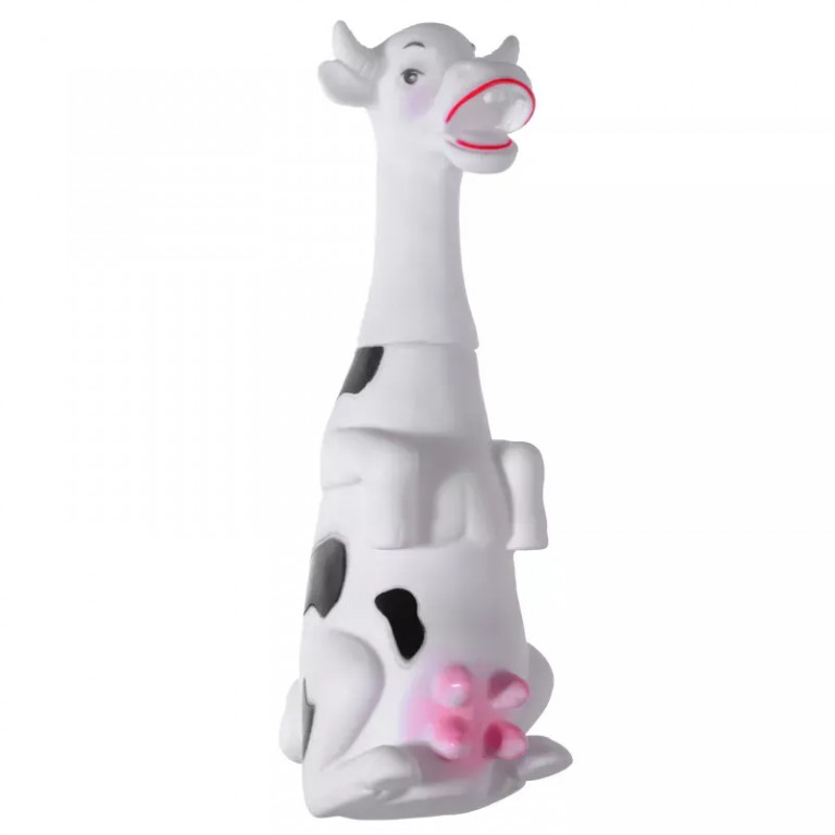 A játék formája és 16,5 cm-es hossza lehetővé teszi, hogy a kisebb és közepes testű kutyák is kényelmesen a szájukba vehessék és hordozzák. A vinyl anyag rugalmassága miatt a játék ellenáll a mindennapi igénybevételnek, miközben kíméletes a fogakhoz és az ínyhez. A vidám tehén minta és az élénk színek nemcsak a kutyát, de a gazdit is jókedvre derítik.