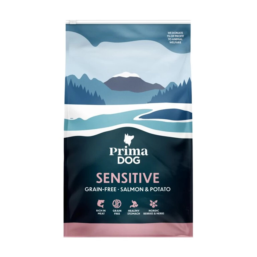 A MOS és FOS prebiotikumok elősegítik a bélflóra egészséges baktériumainak növekedését, ezáltal támogatják az emésztőrendszer megfelelő működését. A receptben gabona helyett könnyen emészthető szénhidrátforrásokat használunk, mint például burgonya, alma és borsó. A lazacolaj, amely gazdag omega-zsírsavakban, átfogóan támogatja a kutya egészségét – a szemektől kezdve a bőrön át egészen a fényes szőrzetig. Északi szuperélelmiszerekben gazdag A PrimaDog szárazeledel számos északi szuperélelmiszert tartalmaz, például mocsári hamvasszeder, kapor, vörös áfonya és homoktövis. Az Yucca schidigera-kivonat csökkenti a bélsár szagát, valamint segít az ízületi gyulladások enyhítésében. Ez a termék nem tartalmaz mesterséges színezékeket, ízfokozókat vagy GMO-összetevőket. Összetevők Szárított lazac 25%, lazacfehérje 15%, burgonya, szárnyaszsír (tokoferol-keverékkel tartósítva, természetes E-vitamin-forrás), borsó, szárított alma, sörélesztő, hidrolizált máj, lazacolaj (2%), Yucca schidigera-kivonat, mannan-oligoszacharidok (MOS), frukto-oligoszacharidok (FOS), vörös áfonya (100 mg/kg), mocsári hamvasszeder (100 mg/kg), homoktövis (100 mg/kg), kapor (100 mg/kg). Analitikai összetevők •Nyersfehérje: 26% •Nyerszsír: 15% •Nyershamu: 7,5% •Nyersrost: 2,5% •Omega-3 zsírsavak: 1,8% •Omega-6 zsírsavak: 2,4%