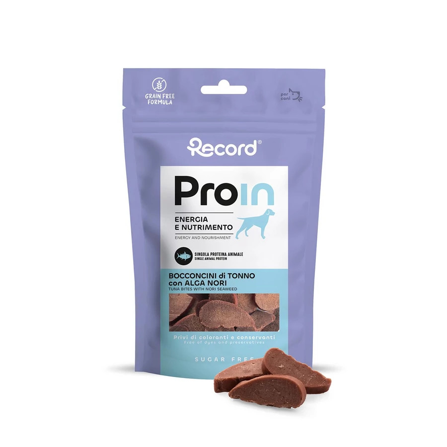 RECORD ProIn Jutalomfalat Kutyáknak Bocconcini Tonhalas 75 g. A ProIn egy- vagy kettős állati fehérjét tartalmazó kutyajutalomfalatok magas biológiai értékű fehérjékkel készülnek, prémium húsokból, például kacsából, csirkéből, tonhalból, tőkehalból, nyúlból és bárányból. Ezek a rendkívül jól emészthető fehérjeforrások támogatják az erős, egészséges izmok fejlődését és fenntartását, valamint elősegítik a regenerálódást fizikai aktivitás után. A receptet különféle szuperélelmiszerek – például áfonya, spenót, alma, lazac és chiamag – egészítik ki, amelyek természetes módon gazdagok antioxidánsokban, vitaminokban és rostokban, erősítik az immunrendszert és hozzájárulnak az általános jólléthez. Az energiát lassú felszívódású szénhidrátok biztosítják, mint az édesburgonya és a burgonyakeményítő, valamint gyümölcsökből, zöldségekből és olyan szuperélelmiszerekből származó tápanyagok, mint a goji bogyó. Ezek az összetevők folyamatos, kiegyensúlyozott energiaszintet biztosítanak, csökkentik az éhséget és mérséklik a vércukorszint-ingadozásokat. Az egészséges zsírok – például a halolaj és a chiamag – kiváló kalóriaforrást és hosszan tartó teltségérzetet adnak, köszönhetően annak, hogy képesek megkötni a folyadékot és fokozatosan felszabadítani az energiát. Ezeknek a tulajdonságoknak köszönhetően a ProIN jutalomfalatok javítják az aktív vagy sportoló kutyák teljesítményét, azonnali energiát és fontos tápanyagokat biztosítanak, pótolják az esszenciális vitaminokat és ásványi anyagokat, valamint elősegítik a bélrendszer egészségét a természetes rostok és a jól emészthető fehérjék egyensúlyának köszönhetően. Az összetevők minősége és a mesterséges adalékanyagok hiánya tisztaságot és biztonságot garantál, míg a gabonamentes és gluténmentes formula a legérzékenyebb kutyák számára is megfelelő. Minden egyes jutalomfalat ellenőrzött, lassú és gondos gyártási folyamat eredménye, amely magas minőségi követelményeket és a kutyád számára ellenállhatatlan ízt biztosít.