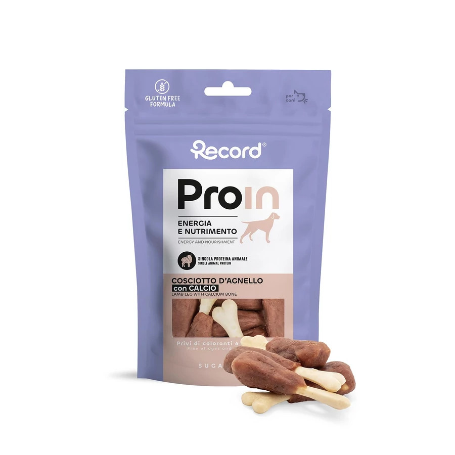 RECORD ProIn Jutalomfalat Kutyáknak Cosciotto Bárányos 75 g. A ProIn egy- vagy kettős állati fehérjét tartalmazó kutyajutalomfalatok magas biológiai értékű fehérjékkel készülnek, prémium húsokból, például kacsából, csirkéből, tonhalból, tőkehalból, nyúlból és bárányból. Ezek a rendkívül jól emészthető fehérjeforrások támogatják az erős, egészséges izmok fejlődését és fenntartását, valamint elősegítik a regenerálódást fizikai aktivitás után. A receptet különféle szuperélelmiszerek – például áfonya, spenót, alma, lazac és chiamag – egészítik ki, amelyek természetes módon gazdagok antioxidánsokban, vitaminokban és rostokban, erősítik az immunrendszert és hozzájárulnak az általános jólléthez. Az energiát lassú felszívódású szénhidrátok biztosítják, mint az édesburgonya és a burgonyakeményítő, valamint gyümölcsökből, zöldségekből és olyan szuperélelmiszerekből származó tápanyagok, mint a goji bogyó. Ezek az összetevők folyamatos, kiegyensúlyozott energiaszintet biztosítanak, csökkentik az éhséget és mérséklik a vércukorszint-ingadozásokat. Az egészséges zsírok – például a halolaj és a chiamag – kiváló kalóriaforrást és hosszan tartó teltségérzetet adnak, köszönhetően annak, hogy képesek megkötni a folyadékot és fokozatosan felszabadítani az energiát. Ezeknek a tulajdonságoknak köszönhetően a ProIN jutalomfalatok javítják az aktív vagy sportoló kutyák teljesítményét, azonnali energiát és fontos tápanyagokat biztosítanak, pótolják az esszenciális vitaminokat és ásványi anyagokat, valamint elősegítik a bélrendszer egészségét a természetes rostok és a jól emészthető fehérjék egyensúlyának köszönhetően. Az összetevők minősége és a mesterséges adalékanyagok hiánya tisztaságot és biztonságot garantál, míg a gabonamentes és gluténmentes formula a legérzékenyebb kutyák számára is megfelelő. Minden egyes jutalomfalat ellenőrzött, lassú és gondos gyártási folyamat eredménye, amely magas minőségi követelményeket és a kutyád számára ellenállhatatlan ízt biztosít.
