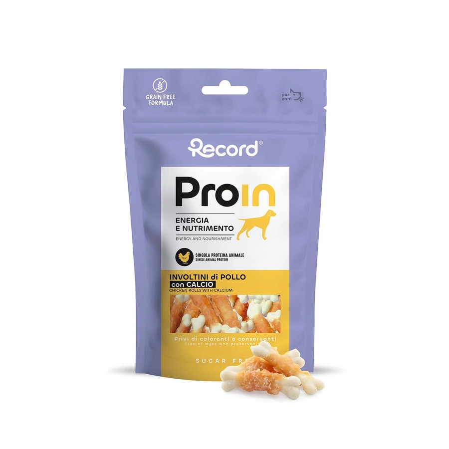 RECORD ProIn Jutalomfalat Kutyáknak Involtini Csirke és Kálcium 75 g. A ProIn egy- vagy kettős állati fehérjét tartalmazó kutyajutalomfalatok magas biológiai értékű fehérjékkel készülnek, prémium húsokból, például kacsából, csirkéből, tonhalból, tőkehalból, nyúlból és bárányból. Ezek a rendkívül jól emészthető fehérjeforrások támogatják az erős, egészséges izmok fejlődését és fenntartását, valamint elősegítik a regenerálódást fizikai aktivitás után. A receptet különféle szuperélelmiszerek – például áfonya, spenót, alma, lazac és chiamag – egészítik ki, amelyek természetes módon gazdagok antioxidánsokban, vitaminokban és rostokban, erősítik az immunrendszert és hozzájárulnak az általános jólléthez. Az energiát lassú felszívódású szénhidrátok biztosítják, mint az édesburgonya és a burgonyakeményítő, valamint gyümölcsökből, zöldségekből és olyan szuperélelmiszerekből származó tápanyagok, mint a goji bogyó. Ezek az összetevők folyamatos, kiegyensúlyozott energiaszintet biztosítanak, csökkentik az éhséget és mérséklik a vércukorszint-ingadozásokat. Az egészséges zsírok – például a halolaj és a chiamag – kiváló kalóriaforrást és hosszan tartó teltségérzetet adnak, köszönhetően annak, hogy képesek megkötni a folyadékot és fokozatosan felszabadítani az energiát. Ezeknek a tulajdonságoknak köszönhetően a ProIN jutalomfalatok javítják az aktív vagy sportoló kutyák teljesítményét, azonnali energiát és fontos tápanyagokat biztosítanak, pótolják az esszenciális vitaminokat és ásványi anyagokat, valamint elősegítik a bélrendszer egészségét a természetes rostok és a jól emészthető fehérjék egyensúlyának köszönhetően. Az összetevők minősége és a mesterséges adalékanyagok hiánya tisztaságot és biztonságot garantál, míg a gabonamentes és gluténmentes formula a legérzékenyebb kutyák számára is megfelelő. Minden egyes jutalomfalat ellenőrzött, lassú és gondos gyártási folyamat eredménye, amely magas minőségi követelményeket és a kutyád számára ellenállhatatlan ízt biztosít.