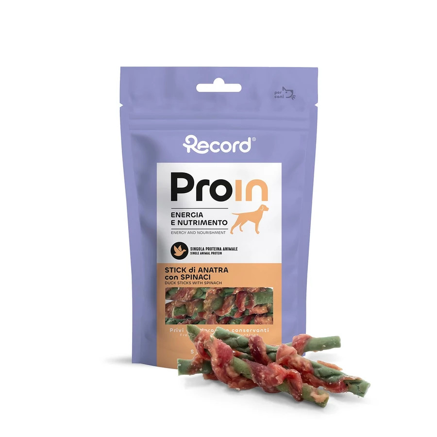 RECORD ProIn Jutalomfalat Kutyáknak Stick Kacsás 75 g. A ProIn egy- vagy kettős állati fehérjét tartalmazó kutyajutalomfalatok magas biológiai értékű fehérjékkel készülnek, prémium húsokból, például kacsából, csirkéből, tonhalból, tőkehalból, nyúlból és bárányból. Ezek a rendkívül jól emészthető fehérjeforrások támogatják az erős, egészséges izmok fejlődését és fenntartását, valamint elősegítik a regenerálódást fizikai aktivitás után. A receptet különféle szuperélelmiszerek – például áfonya, spenót, alma, lazac és chiamag – egészítik ki, amelyek természetes módon gazdagok antioxidánsokban, vitaminokban és rostokban, erősítik az immunrendszert és hozzájárulnak az általános jólléthez. Az energiát lassú felszívódású szénhidrátok biztosítják, mint az édesburgonya és a burgonyakeményítő, valamint gyümölcsökből, zöldségekből és olyan szuperélelmiszerekből származó tápanyagok, mint a goji bogyó. Ezek az összetevők folyamatos, kiegyensúlyozott energiaszintet biztosítanak, csökkentik az éhséget és mérséklik a vércukorszint-ingadozásokat. Az egészséges zsírok – például a halolaj és a chiamag – kiváló kalóriaforrást és hosszan tartó teltségérzetet adnak, köszönhetően annak, hogy képesek megkötni a folyadékot és fokozatosan felszabadítani az energiát. Ezeknek a tulajdonságoknak köszönhetően a ProIN jutalomfalatok javítják az aktív vagy sportoló kutyák teljesítményét, azonnali energiát és fontos tápanyagokat biztosítanak, pótolják az esszenciális vitaminokat és ásványi anyagokat, valamint elősegítik a bélrendszer egészségét a természetes rostok és a jól emészthető fehérjék egyensúlyának köszönhetően. Az összetevők minősége és a mesterséges adalékanyagok hiánya tisztaságot és biztonságot garantál, míg a gabonamentes és gluténmentes formula a legérzékenyebb kutyák számára is megfelelő. Minden egyes jutalomfalat ellenőrzött, lassú és gondos gyártási folyamat eredménye, amely magas minőségi követelményeket és a kutyád számára ellenállhatatlan ízt biztosít.