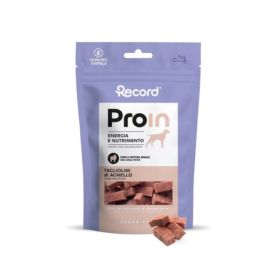 RECORD ProIn Jutalomfalat Kutyáknak Tagliolini Bárányos 75 g. A ProIn egy- vagy kettős állati fehérjét tartalmazó kutyajutalomfalatok magas biológiai értékű fehérjékkel készülnek, prémium húsokból, például kacsából, csirkéből, tonhalból, tőkehalból, nyúlból és bárányból. Ezek a rendkívül jól emészthető fehérjeforrások támogatják az erős, egészséges izmok fejlődését és fenntartását, valamint elősegítik a regenerálódást fizikai aktivitás után. A receptet különféle szuperélelmiszerek – például áfonya, spenót, alma, lazac és chiamag – egészítik ki, amelyek természetes módon gazdagok antioxidánsokban, vitaminokban és rostokban, erősítik az immunrendszert és hozzájárulnak az általános jólléthez. Az energiát lassú felszívódású szénhidrátok biztosítják, mint az édesburgonya és a burgonyakeményítő, valamint gyümölcsökből, zöldségekből és olyan szuperélelmiszerekből származó tápanyagok, mint a goji bogyó. Ezek az összetevők folyamatos, kiegyensúlyozott energiaszintet biztosítanak, csökkentik az éhséget és mérséklik a vércukorszint-ingadozásokat. Az egészséges zsírok – például a halolaj és a chiamag – kiváló kalóriaforrást és hosszan tartó teltségérzetet adnak, köszönhetően annak, hogy képesek megkötni a folyadékot és fokozatosan felszabadítani az energiát. Ezeknek a tulajdonságoknak köszönhetően a ProIN jutalomfalatok javítják az aktív vagy sportoló kutyák teljesítményét, azonnali energiát és fontos tápanyagokat biztosítanak, pótolják az esszenciális vitaminokat és ásványi anyagokat, valamint elősegítik a bélrendszer egészségét a természetes rostok és a jól emészthető fehérjék egyensúlyának köszönhetően. Az összetevők minősége és a mesterséges adalékanyagok hiánya tisztaságot és biztonságot garantál, míg a gabonamentes és gluténmentes formula a legérzékenyebb kutyák számára is megfelelő. Minden egyes jutalomfalat ellenőrzött, lassú és gondos gyártási folyamat eredménye, amely magas minőségi követelményeket és a kutyád számára ellenállhatatlan ízt biztosít.