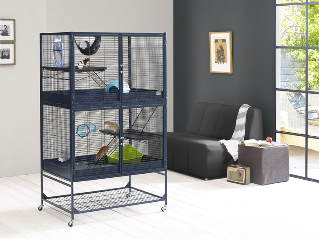 A Suite Royale ideális patkányok számára, mivel a 13 mm-es rácstávolság megakadályozza a szökést, a nagy térben pedig komplex "kalandparkot" építhet nekik. Ha vadászgörényt tart benne, a tálcákra helyezzen puha linóleumot vagy textilt, hogy óvja érzékeny talpukat.