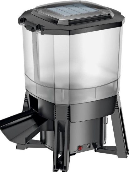 - Működési elv: Napenergiával működő automatikus etető