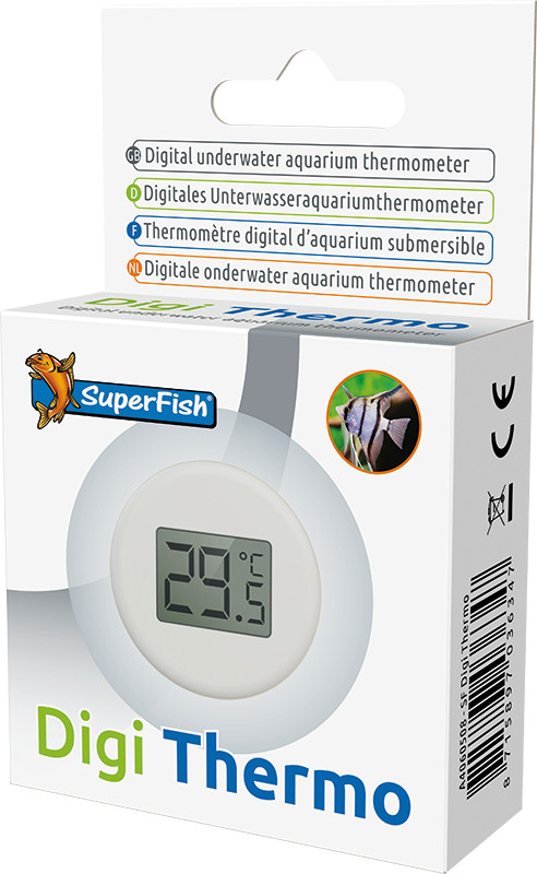 A SuperFish DIGI THERMO egy kompakt, könnyen kezelhető digitális hőmérő, amelyet édesvízi és tengeri akváriumokhoz terveztek. Az LCD kijelzős eszköz pontosan méri a víz hőmérsékletét, és lehetővé teszi a hőmérséklet folyamatos figyelését, ami létfontosságú a halak és más vízi élőlények egészségének megőrzéséhez.