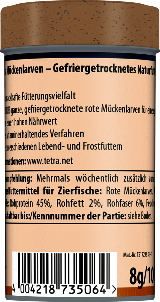 A szárított vörös szúnyoglárva könnyű, ezért sokáig lebeg a felszínen. Ha az akvárium középső vagy alsó szintjén élő halakat szeretné etetni vele, etetés előtt áztassa be a lárvákat egy kis pohár akváriumvízbe, hogy könnyebben elmerüljenek.