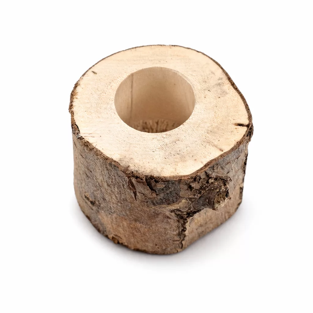 A precíz furatnak köszönhetően a zselés tégely stabilan a helyén marad, így minimálisra csökkenthető a rendetlenség és az aljzat beszennyeződése. Mivel minden darab egyedi, kezeletlen faág-metszetből készül, a termék tökéletesen illeszkedik a biotóp jellegű élőhelyekbe, segítve a természetközeli környezet kialakítását.