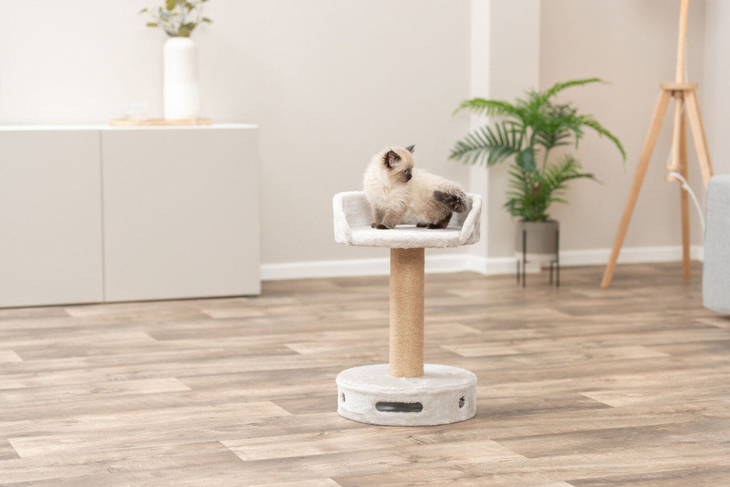Kompakt mérete miatt ideális kisebb lakásokba is, miközben tökéletesen kielégíti a macska kaparó- és mászóigényeit. Könnyen összeszerelhető és tisztán tartható, így praktikus választás minden cicagazdi számára.