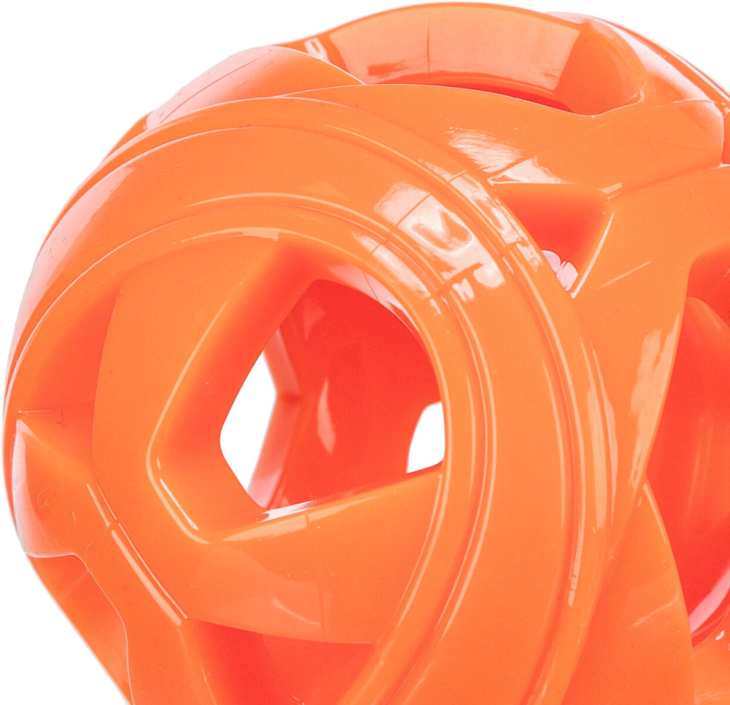 A narancs színű labda jól látható kültéren és beltéren egyaránt, így kiváló apportjáték séta vagy kertben való játék során is. Könnyű és biztonságos kialakítása miatt kisebb és közepes termetű kutyák számára is ideális választás. A TPE anyag rugalmas és enyhén puha, így kíméletes a fogakhoz és az ínyhez, miközben kielégíti a kutya természetes rágási vágyát.