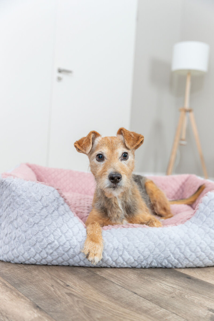 A fekvőhely belseje finom tapintású plüssel borított, míg a külső rész strapabíróbb szövetből készült, így egyszerre esztétikus és tartós. A vidám, mégis visszafogott szürke-rózsaszín dizájn modern dísze lehet a nappalinak vagy a hálószobának. A stabil kialakítás biztosítja, hogy az ágy intenzív használat mellett is megőrizze formáját.