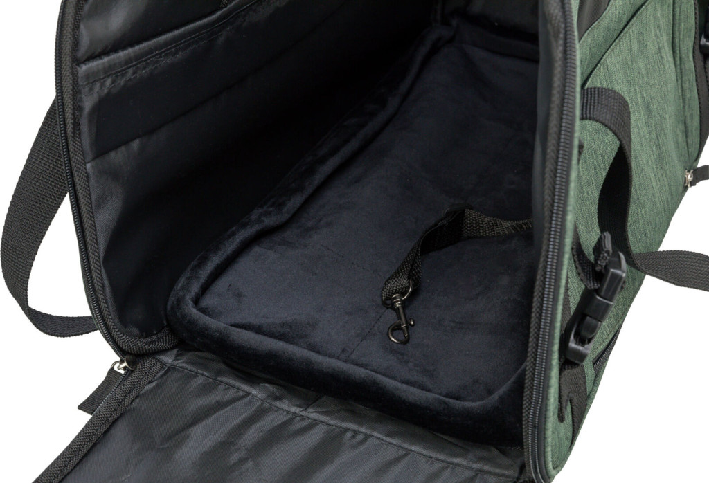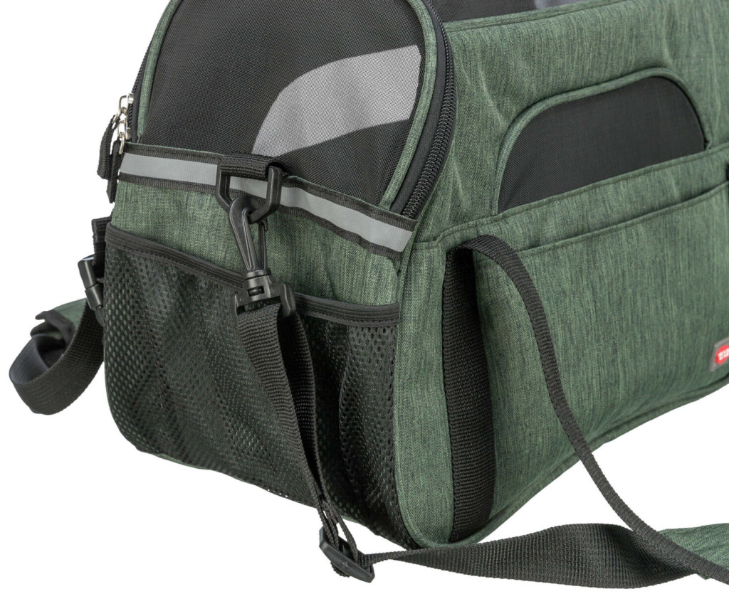 A cipzáras nyílások lehetővé teszik az egyszerű be- és kihelyezést, míg az állítható vállpánt és a kézifogantyú többféle hordozási lehetőséget kínál. A kompakt méret és a könnyű súly miatt kényelmes a gazdinak, miközben kedvence számára biztonságos és otthonos környezetet nyújt. Az olívazöld szín modern, természetközeli megjelenést biztosít.