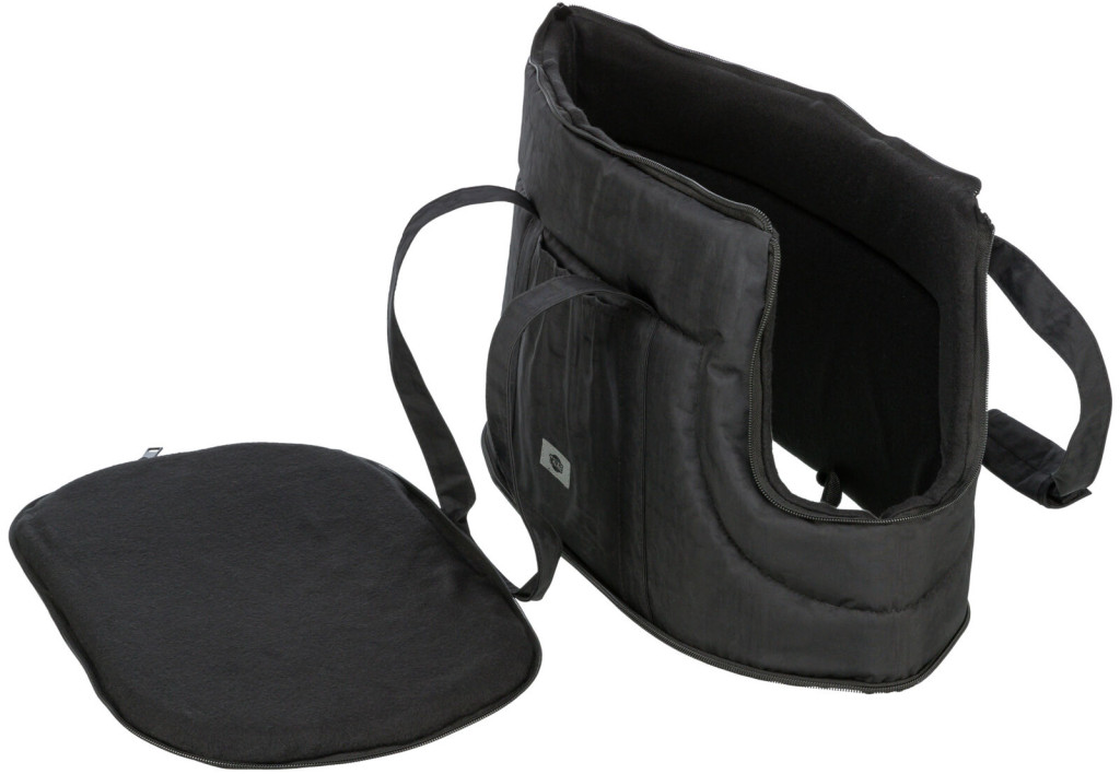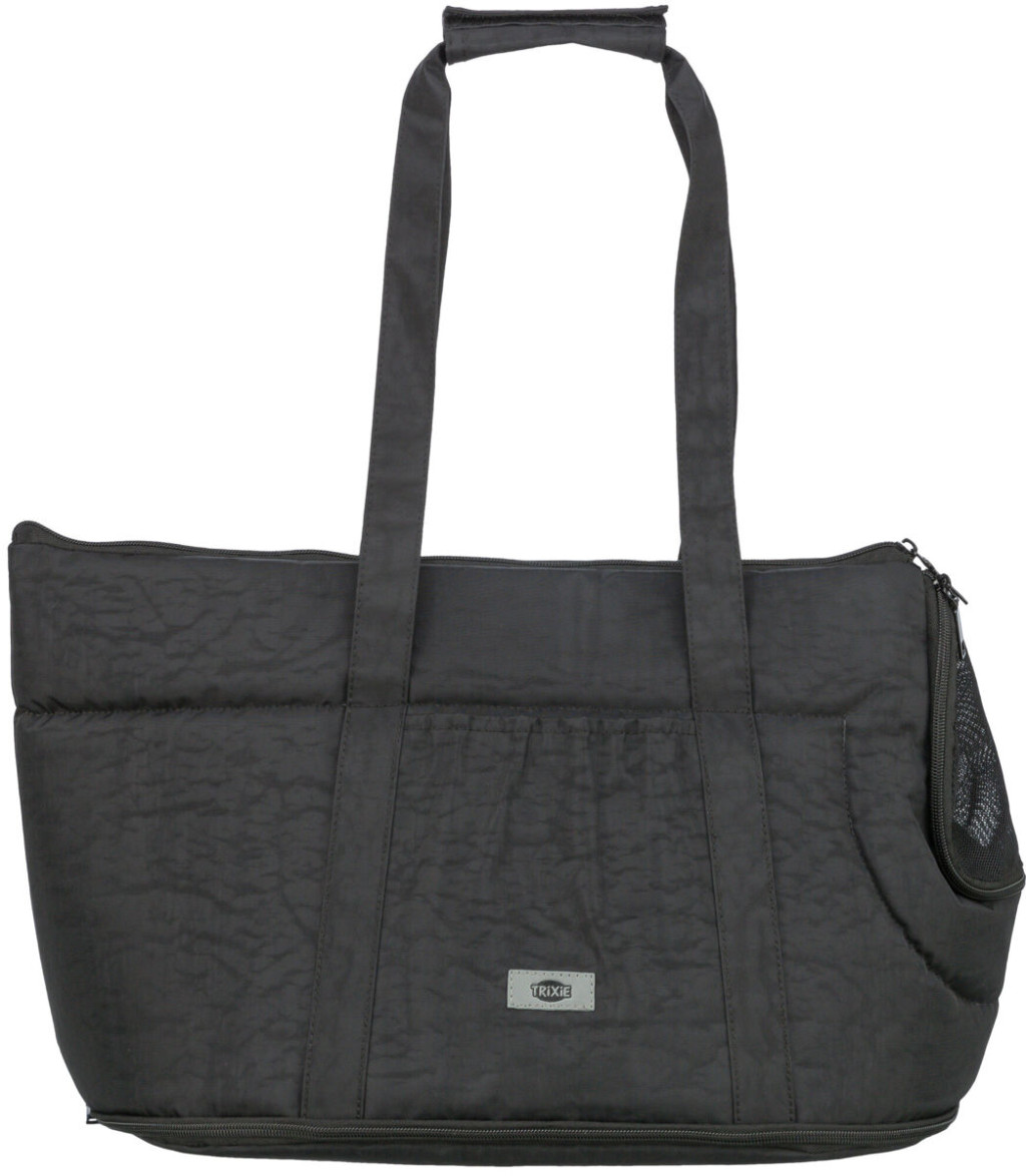 A hordozó elöl és felül cipzárral nyitható, ami megkönnyíti a be- és kihelyezést. Oldalsó zsebei lehetőséget adnak jutalomfalatok vagy kisebb kiegészítők tárolására. Vállpánttal és kézifogantyúval is rendelkezik, így kényelmesen hordható kézben vagy vállon. A klasszikus fekete szín elegáns, letisztult megjelenést biztosít.