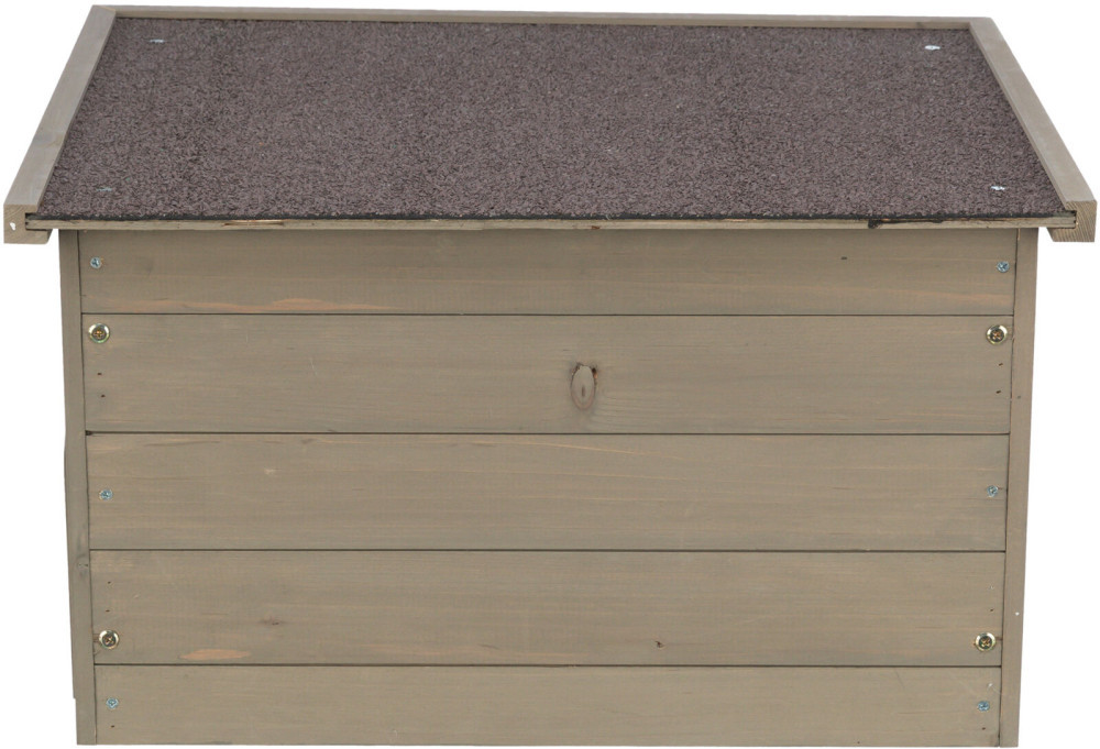 Az odú magas minőségű anyagokból készült, melyek ellenállnak az időjárás viszontagságainak. A tető kiváló védelmet nyújt a csapadék és a nap sugarai ellen, miközben a kis házikó alatti rész lehetőséget teremt a kényelmes pihenésre és az elrejtőzésre. A hátsó nyílás pedig lehetővé teszi a könnyű hozzáférést a kedvencednek.