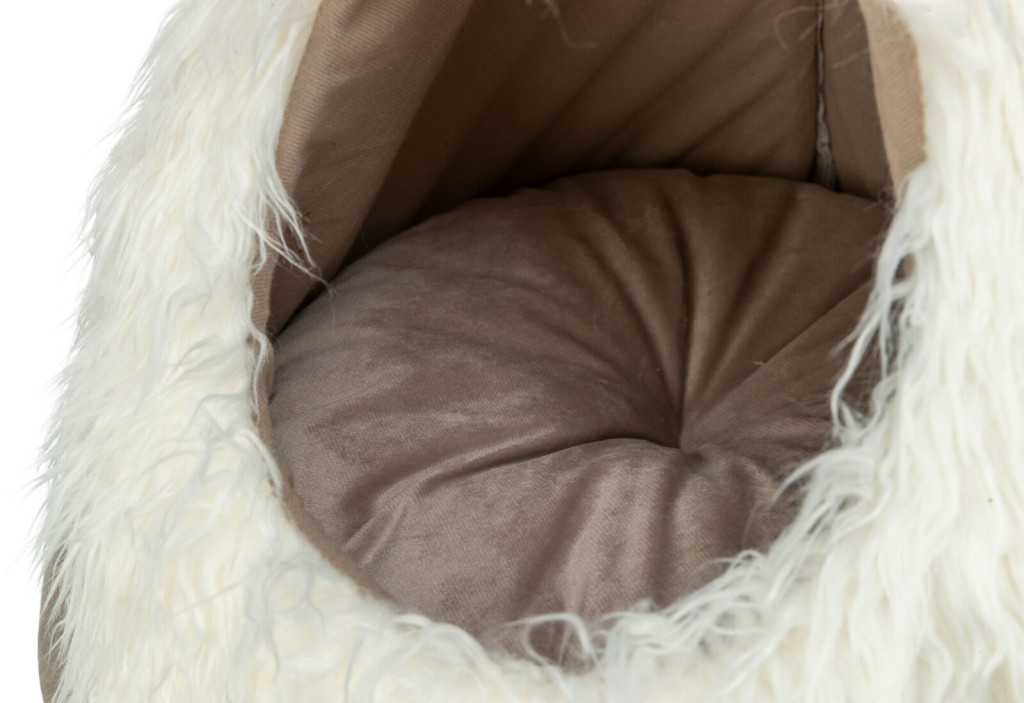 A bújó bársony hatású puha anyagból készült, belsejében párnázott fekvőfelület található, amely extra kényelmet biztosít. Zárt kialakítása menedéket ad, így a kisállatok nyugodtan pihenhetnek és elbújhatnak benne, ha egy kis csendet keresnek.