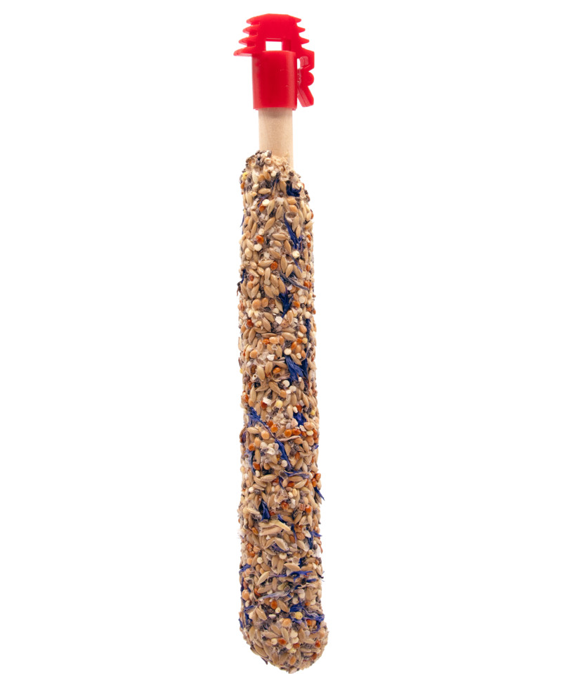 Kínáld hetente 1-2 alkalommal jutalomként vagy rágcsálnivalóként az alapeleség (pl. magkeverék vagy pellet) mellett. A rudakat rögzítheted a kalitka falára a kampóval, így azok természetes módon elérhetők a madár számára. Mindig biztosíts friss ivóvizet és rendszeres etetést. A snack túlzásba vitele kerülendő, mivel nem önálló táp.