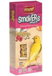 A Vitapol Smakers Prémium Dupla Rúd (gyümölcs) (2 db) 60 g termék célzottan kanárik részére készült, hogy változatosságot és szórakozást vigyen a madár étkezésébe. A rudak magvakból és szárított gyümölcsökből állnak — például sárga köles, búzaliszt, kanárimag, narancshéj, szárított málna, kókuszdió – így természetes forrásból biztosítanak vitaminokat, ásványokat és rostokat.
