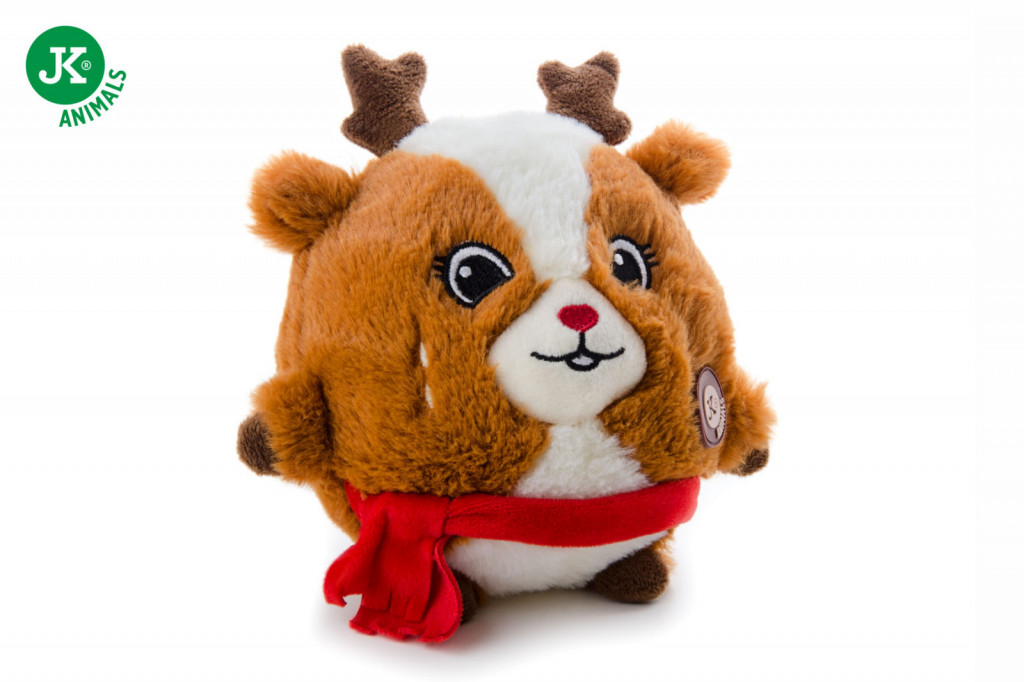 A JK Rénszarvas labda X-Mas (19 cm) egy kedves, ünnepi hangulatú plüss kutyajáték, amely tökéletes választás a karácsonyi időszakban, amikor szeretnéd meglepni kedvencedet valamivel különlegessel. A játék gömb alakú, barátságos rénszarvas mintával készült, amely azonnal meghozza az ünnepi hangulatot – mind a gazdi, mind a kutya számára.