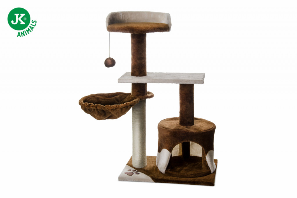 JK | Robin emeletes macskakaparó házzal, pihenővel, játékkal, 50X35X88cm, bézs/barna